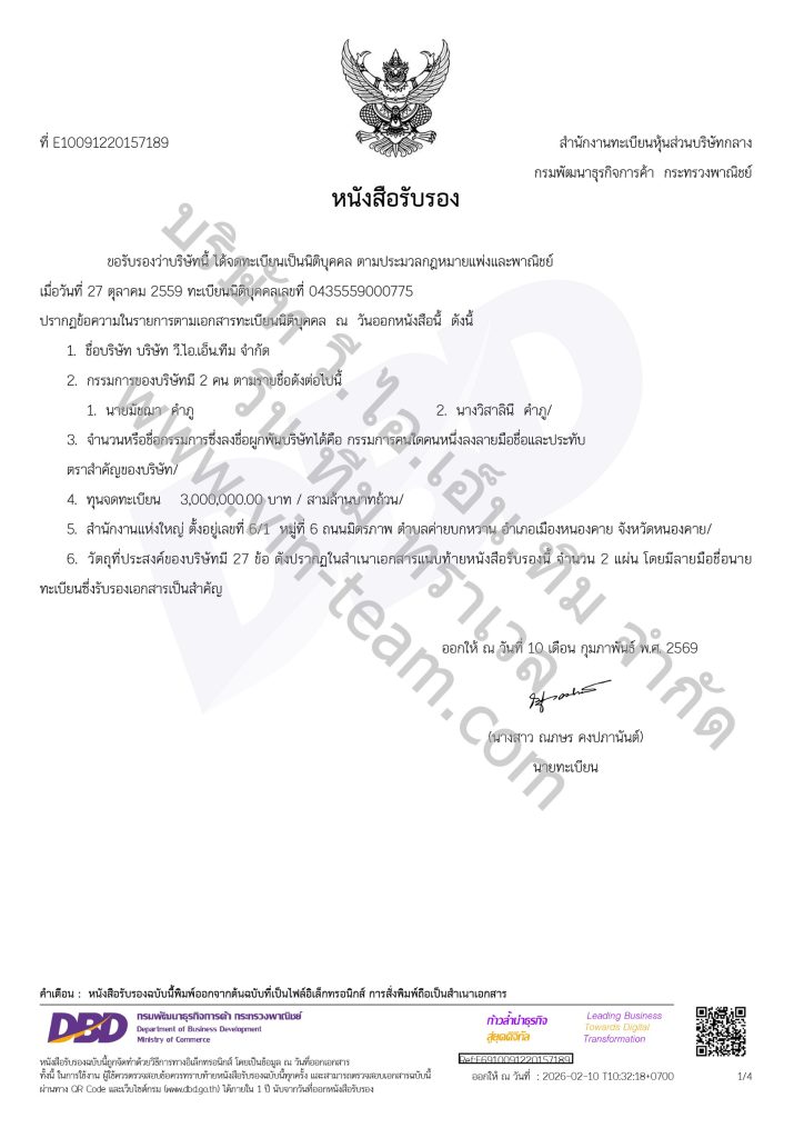 - ทะเบียนพาณิชย์ เลขที่ เลขที่ 0435559000775 ออกโดย กรมพัฒนาธุรกิจการค้า กระทรวงพาณิชย์