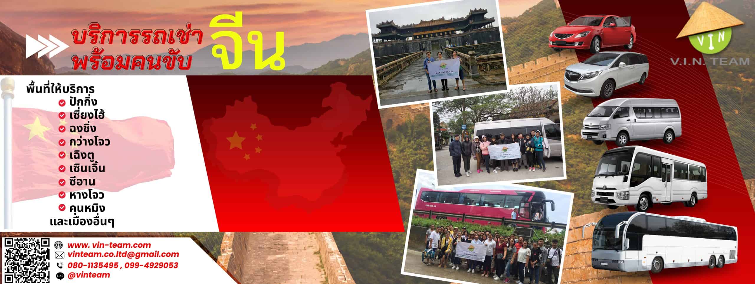 บริการรถเช่า พร้อมคนขับในจีน 2567 (ปักกิ่ง - เซี่ยงไฮ้ - ฉงชิ่ง - กว่างโจว - เฉิงตู - เซินเจิ้น - จางเจียเจี้ย - ลี่เจียง - ซีอาน - หางโจว - คุนหมิง - กุ้ยหลิน - ชิงเต่า - เซียะเหมิน - ฮ่องกง - มาเก๊า และ เมืองอื่นๆ): เราบริการจัดหารถเช่าในจีน พร้อมคนขับ ในเมืองหลักต่างๆ ของจีน พร้อมรับ - ส่ง ท่านไปยังสถาณที่ต่าง ๆ อาทิเช่น นำเที่ยวทัวร์เมืองจีน แบบส่วนตัว Private แบบหมู่คณะ รับ-ส่ง สนามบิน ไปยัง โรงแรม บริษัท หน่วยงาน หรือ สถาณที่ต่าง ๆ เพื่อความสะดวก สะบาย และปลอดภัยในการเดินทาง ไม่ว่าท่านจะเดินทางไปท่องเที่ยว ทัศนศึกษา ไปทำธุรกิจ หรือ ดูงานที่ประเทศจีน จะเป็นคณะเล็กแบบครอบครัว ญาติ เพื่อน หรือ หน่วยงาน ทางเรายินดีให้บริการทุกท่านด้วยความเต็มใจ เรามีบริการรถเช่าครอบคลุมทั่วประเทศจีน : รถเช่าปักกิ่ง - รถเช่าเซี่ยงไฮ้ - รถเช่าฉงชิ่ง - รถเช่ากว่างโจว - รถเช่าเฉิงตู - รถเช่าเชินเจิ้น - รถเช่าจางเจียเจี้ย - รถเช่าลี่เจียง - รถเช่าซีอาน - รถเช่าหางโจว - รถเช่าคุนหมิง - รถเช่ากุ้ยหลิน - รถเช่าชิงเต่า - เซียะเหมิน - รถเช่าฮ่องกง - รถเช่ามาเก๊า และ เมืองอื่นๆ .......ดูรายละเอียดเพิ่มเติม